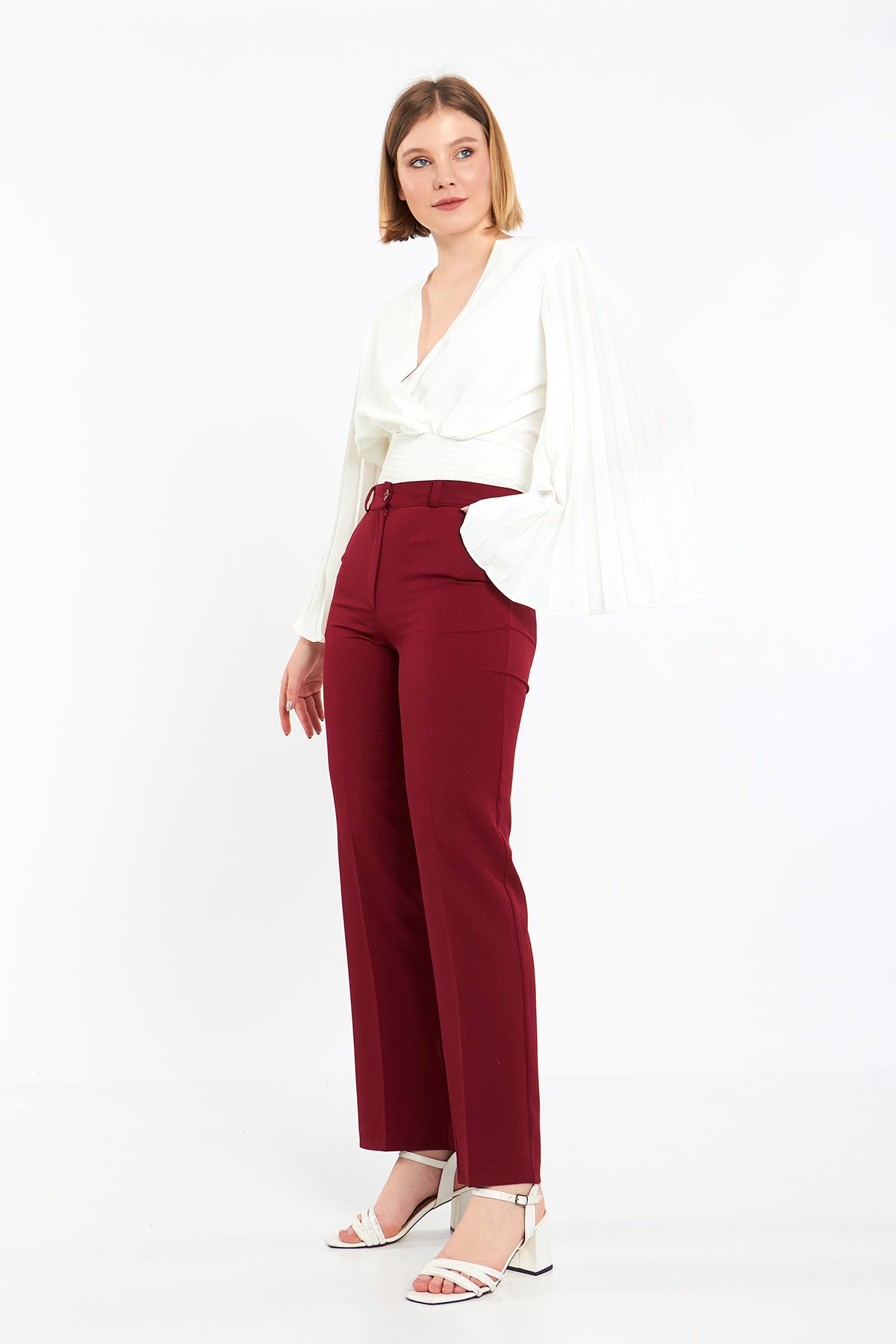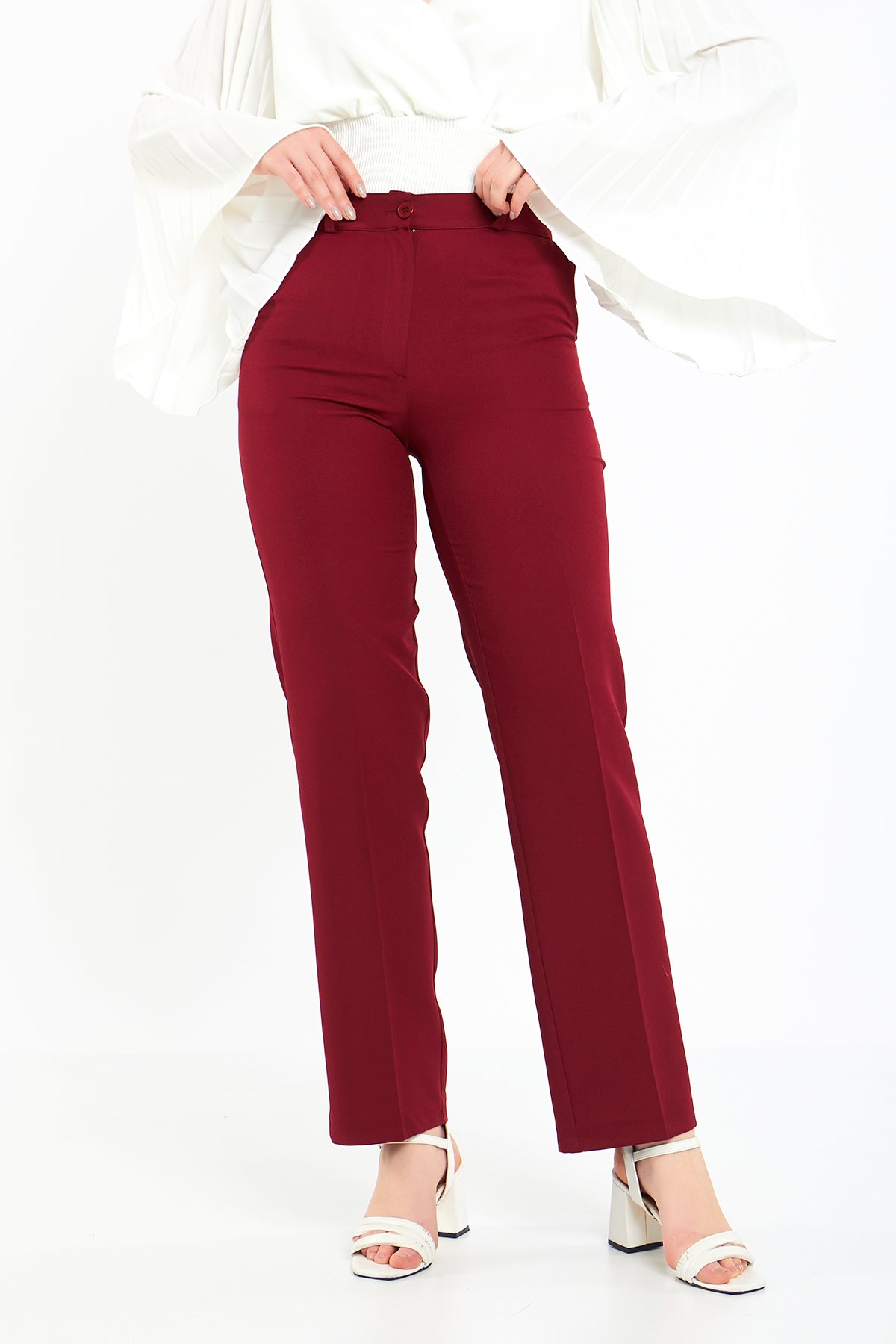 Bordo Geniş Paçalı Kumaş Pantolon