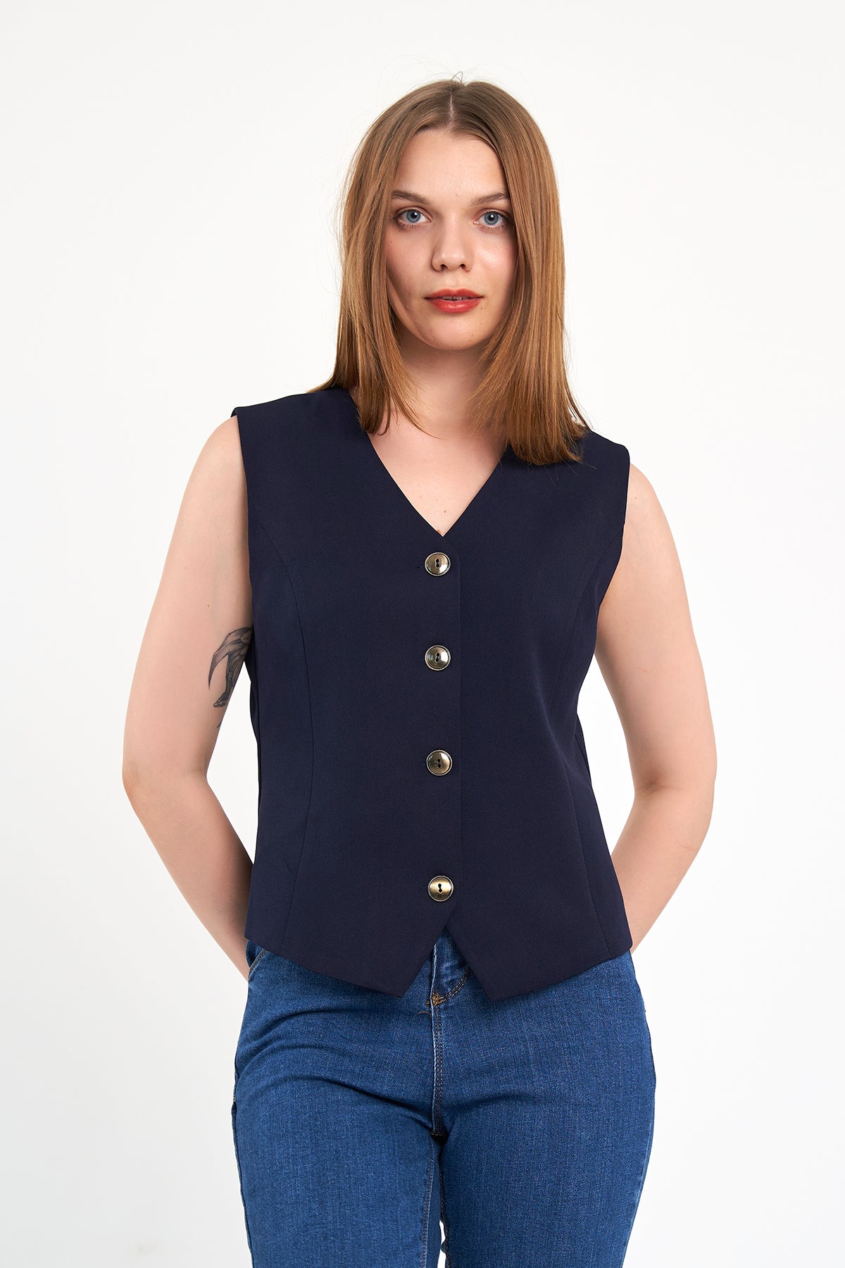 Lacivert Günlük Klasik Yelek, regular kalıp, astarlı, takım yeleği