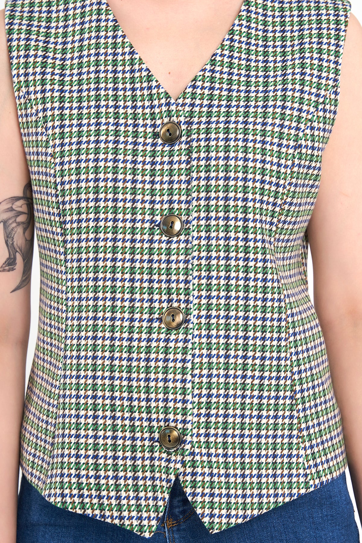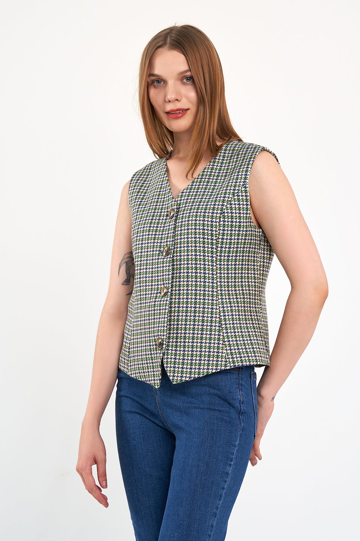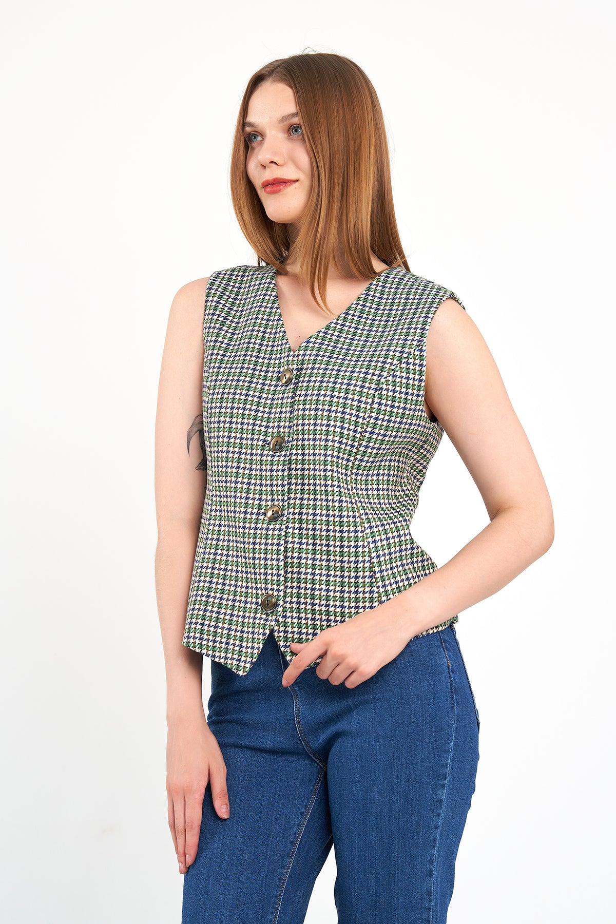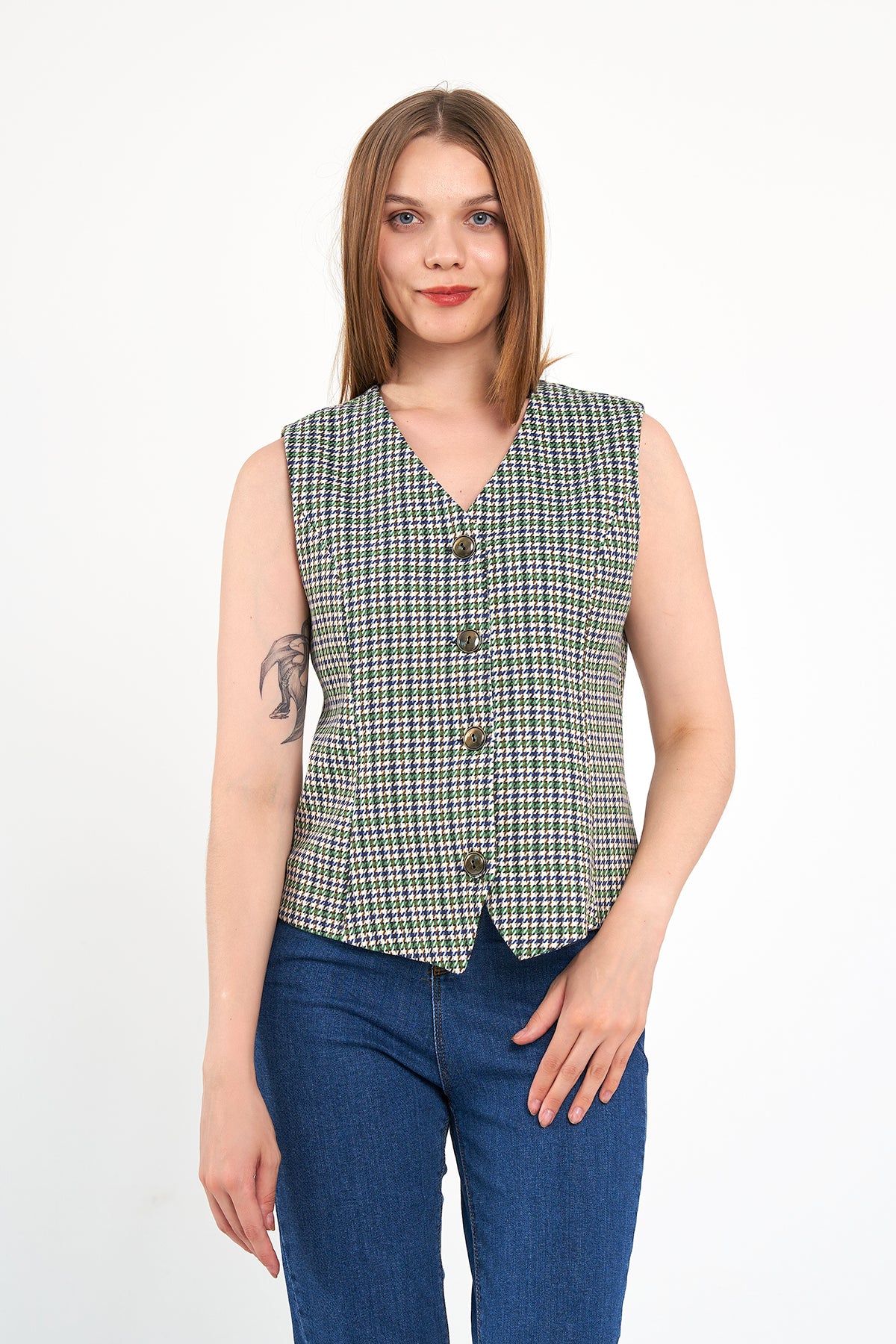 Yeşil Desenli Günlük Klasik Yelek, regular kalıp, astarlı, takım yeleği